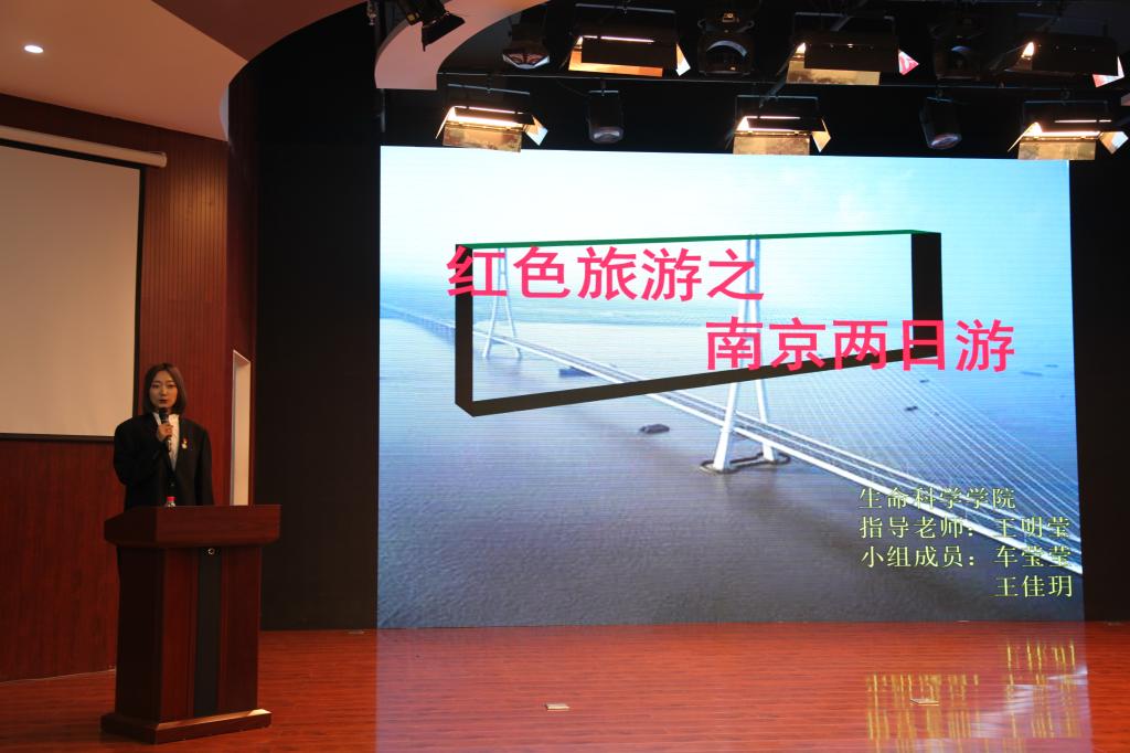 比赛过程中,参赛选手们依次上台对自己的作品进行展示或讲解。形式多样的红色旅游创意作品为我们呈现一堂生动的思政大课,让同学们在了解景区的同重温了党的辉煌历史。