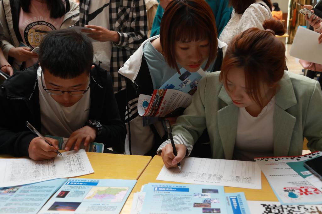 在招聘会现场,毕业生们手持精心准备好的自荐书和简历,积极与招聘单位交流,主动了解用人单位情况。据统计,参会学生达成就业意向的近150名。