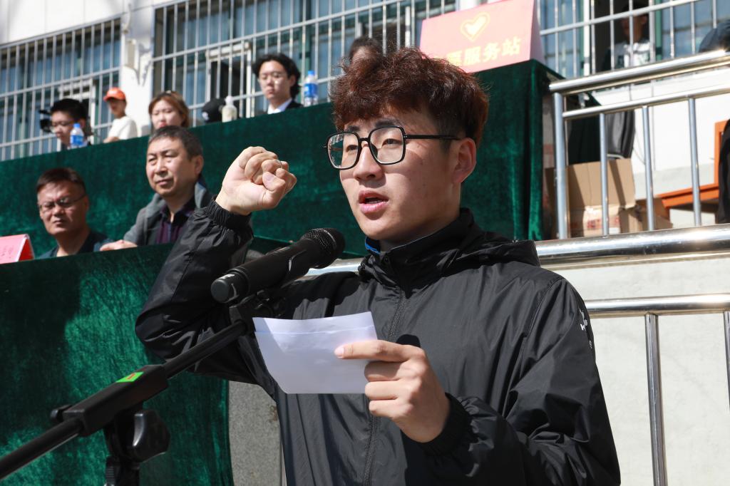 体育学院2020级社会体育指导与管理专业肖慧鹏、体育学院2019级体育教育专业罗嘉豪分别代表全体运动员、全体裁判员向大会宣誓。