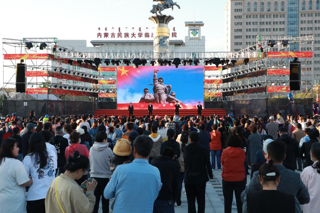 演出中,乌兰牧骑队员们以蓝天为幕,以大地为舞台,用专业的演出水准和精湛的表演技艺为现场群众送去丰盛的文化大餐,赢得了观众们的阵阵掌声,取得了良好的社会反响。文艺演出发挥了高校艺术人才优势,将文化服务作为新时代文明实践志愿服务的有效载体,用优秀的文艺作品宣传党史学习教育,丰富广大市民精神文化生活,助力文明城市建设,服务地方社会经济文化发展,同时展现了两校文艺工作者的风采和党史学习教育的丰硕成果。