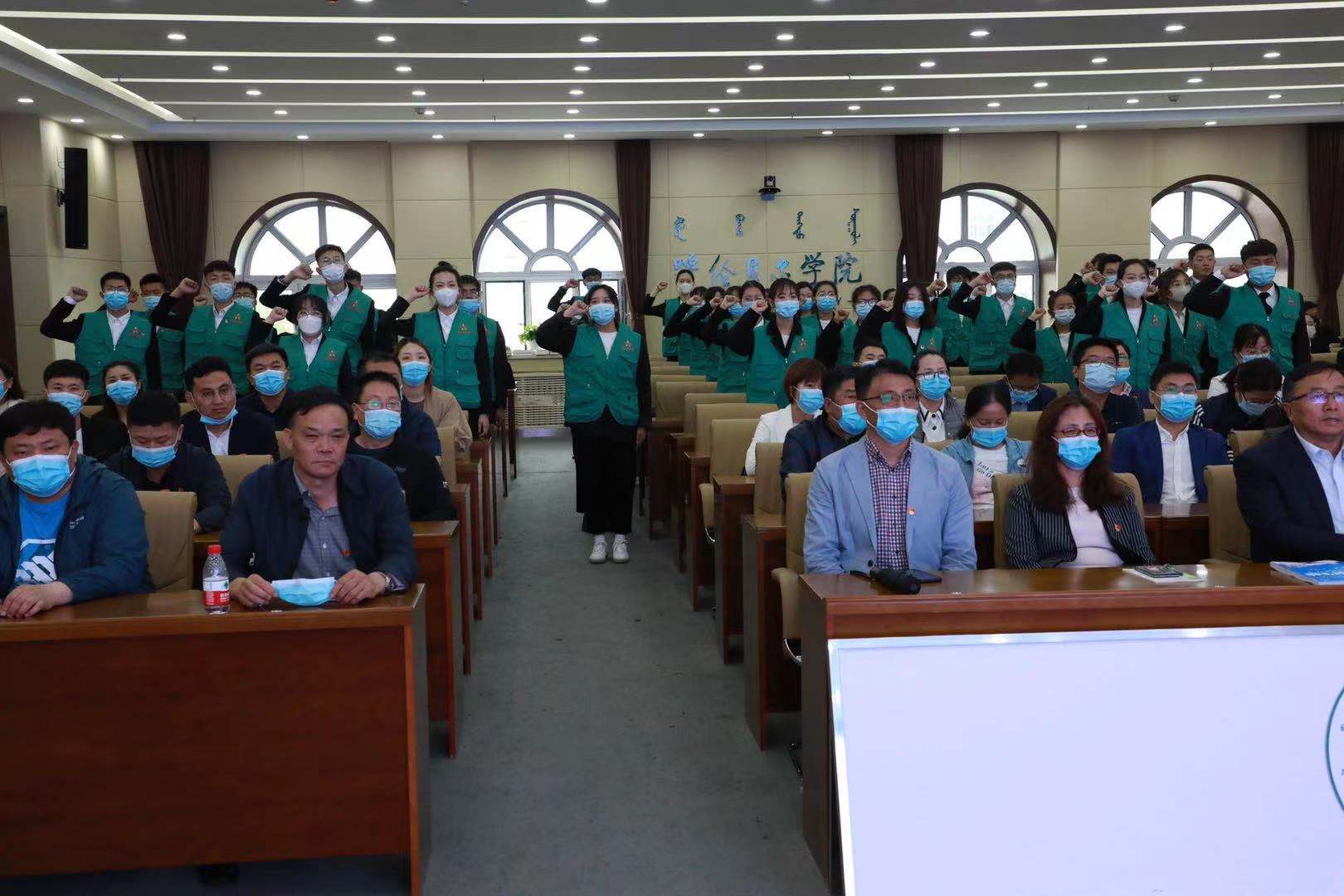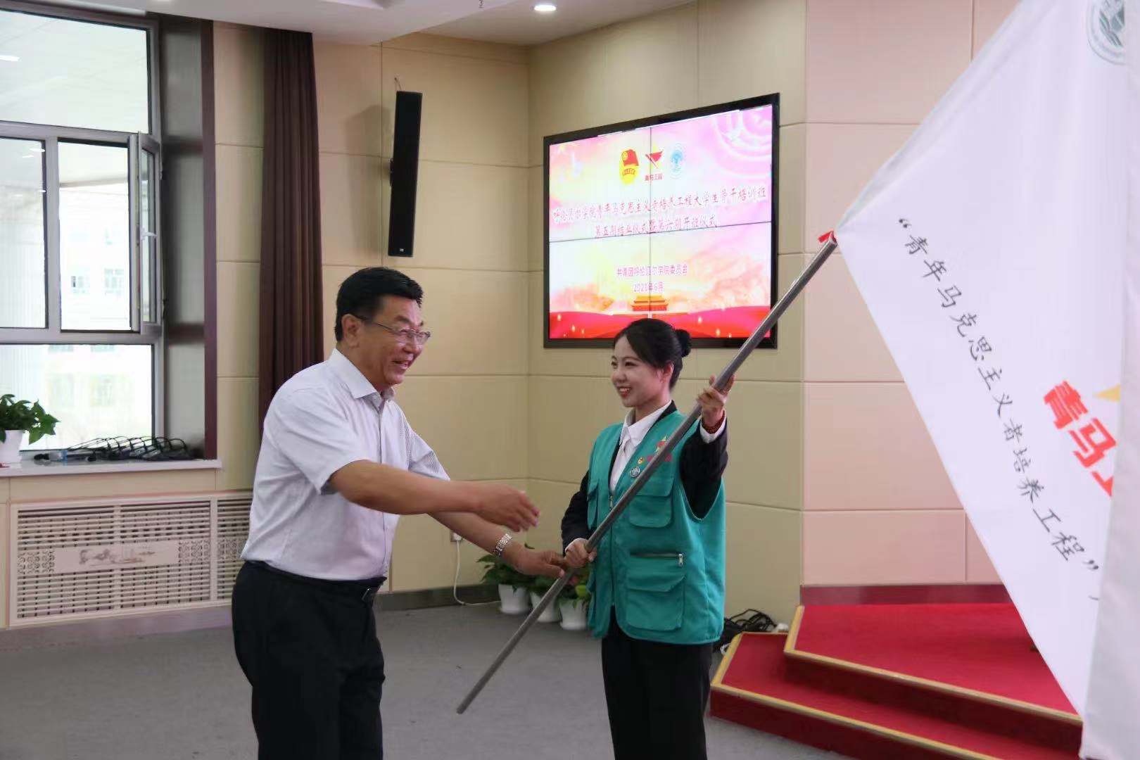 随后,王广利书记为新一期青马班授旗。这面旗帜的传递,也是对第六期青马班学员美好期盼的传递。在第六期青马班全体成员庄严的宣誓声和团歌声中,活动拉下帷幕。