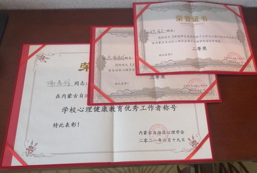 6月18-20日,第十七届心理学学术会议在内蒙古民族大学召开。Beat365积极参加先进集体、个人和论文表彰活动。经过专家组评审,Beat365心理健康教育与咨询中心被评为“内蒙古心理健康教育工作先进单位”;谢春辉老师荣获“内蒙古心理健康教育优秀工作者”;王晓芳、凌占一老师的论文《新冠肺炎疫情防控下大学生心理问题应对及疏导》荣获优秀论文二等奖;张晶、谢春辉老师的论文《互联网时代高校心理健康教育管理问题的思考》荣获优秀论文三等奖。