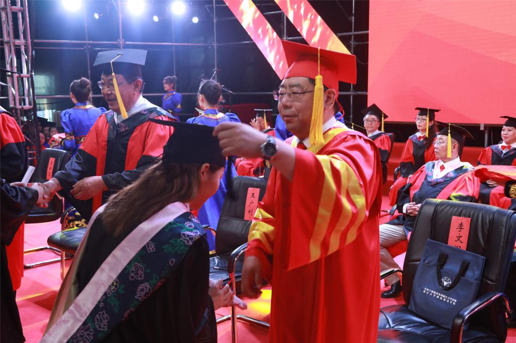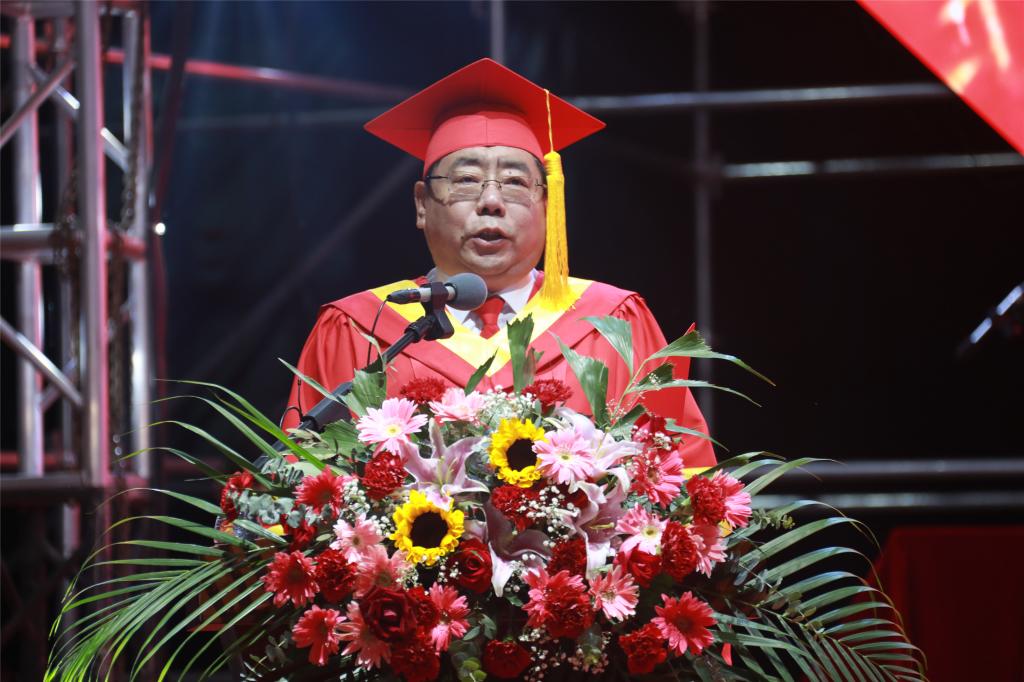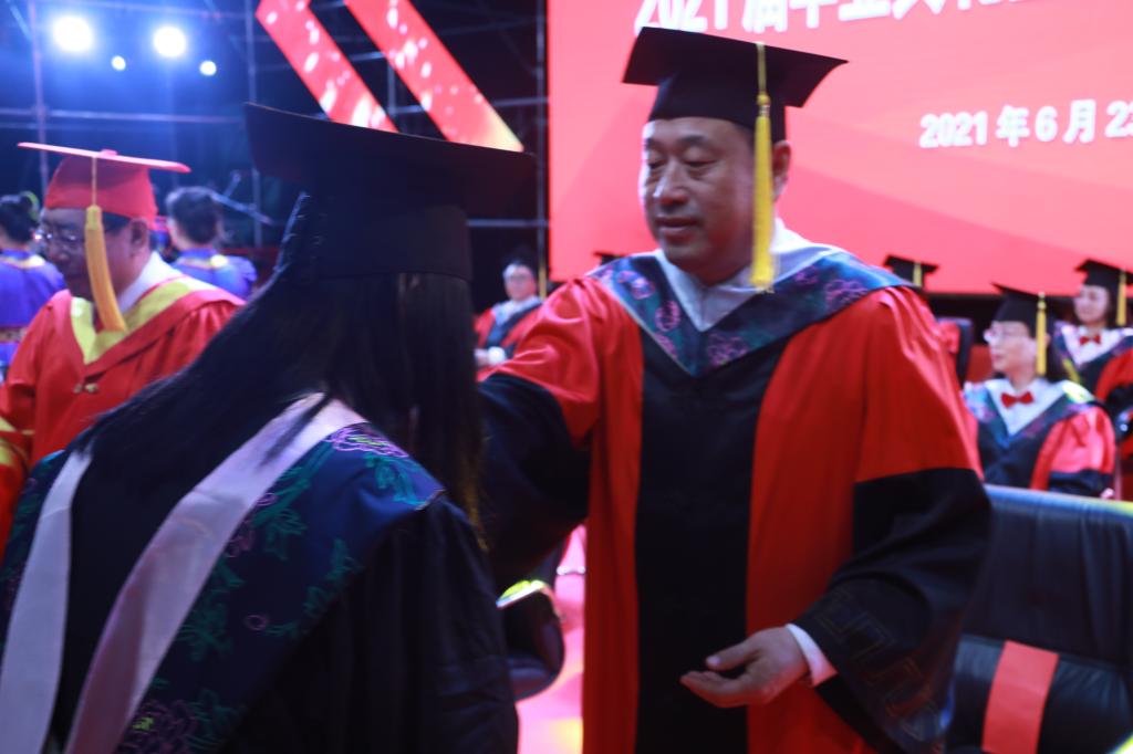 李文阁校长以“思源致远赤心报国 逐光而行”为题进行了致辞。他代表学校全体师生向所有2021届毕业生表示最热烈的祝贺和最诚挚的祝福!同时向辛勤培养他们的家人、老师等所有幕后英雄表示衷心的感谢!李文阁校长指出,今年的毕业季恰逢中国共产党成立100周年,你们这一代年轻人与伟大的时代同向同行,是实现第一个百年奋斗目标的见证者,是实现第二个百年奋斗目标的建设者。希望同学们从这里出发,读懂家国责任,读懂这个时代,读懂你自己,不断超越,成就学业和人生的精彩。
