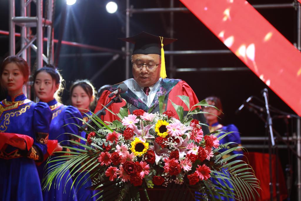 6月23日上午,学校在体育馆隆重举办2021届毕业典礼暨学士学位授予仪式。学校党委书记王广利,党委副书记、校长李文阁,党委副书记张国栋,党委委员、副校长孟祥宏,党委委员、纪委书记岳勇,党委委员、副校长敖特根出席典礼仪式。学校副处级以上干部、二级学院教科办主任、团学办主任、综合办主任、教师代表、在校生代表等1800余人参加了典礼。典礼由党委委员、副校长孟祥宏主持。