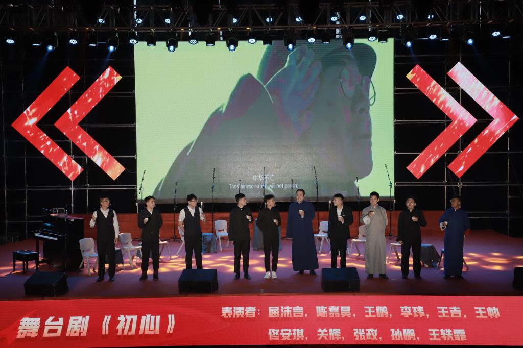 整场活动共分为《开天辟地》《改天换地》《翻天覆地》《惊天动地》四个篇章。每一个篇章都在舞台剧、诗朗诵的表演中拉开帷幕。校青马班和学生会的同学们倾情演绎了《初心》《绣红旗》《团圆》《守望相助 尽责圆梦》等剧目,展现了中国共产党在不同时期团结带领中国人民完成救国大业、兴国大业、富国大业、强国大业的历史情境。