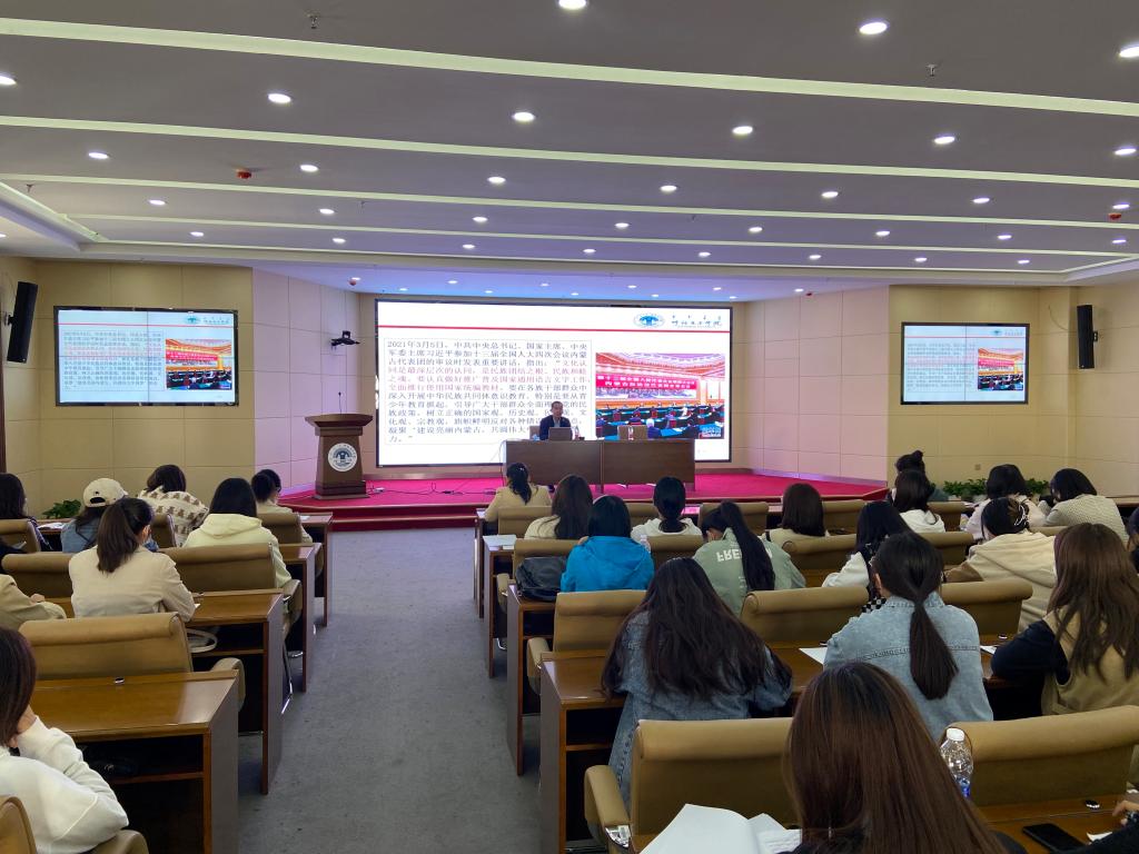 会后,为确保高质量高水平完成挂点帮扶工作,Beat365历史文化学院赵金辉副教授对支教学生进行了加强民族团结、铸牢中华民族共同体意识专题培训。他为学生解读使用国家通用语言文字重要意义,带领学生深入学习领会铸牢中华民族共同体意识重大理论创新,引导学生完整准确地理解铸牢中华民族共同体意识重大理论。