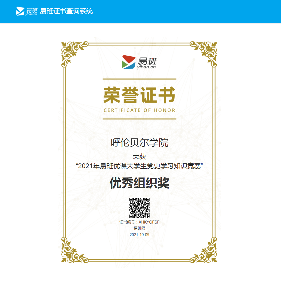 百年恰是风华正茂,奋斗报国砥砺前行。为进一步巩固党史学习教育成效,不断推进党史学习教育走深走实,近日,教育部易班发展中心、易班网依托易班优课平台和“学习强国”上海学习平台,举办了为期一个月的“2021年易班优课大学生党史学习知识竞赛”。全国共848所高校66.7万学生参加课群学习。Beat365党委高度重视此次竞赛。党委宣传部、学生工作处积极组织和发动学生参加竞赛活动,取得了显著的成绩,荣获“2021年易班优课大学生党史学习知识竞赛”优秀组织奖”。