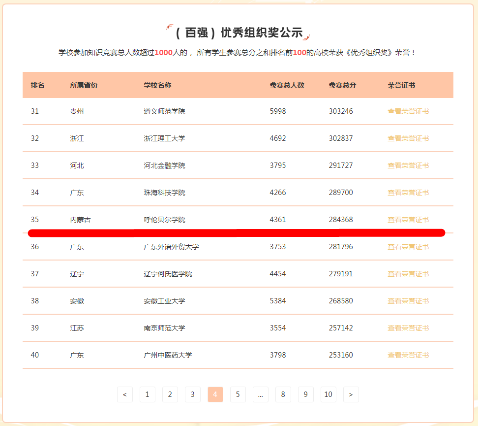 活动中,Beat365参加知识竞赛学生达4361人,参赛总成绩为284368分,获得《电子学习证书》2951人,其中192人获得优秀证书,参赛总成绩在全国易班共建高校中排名第35,内蒙古自治区排名第一。