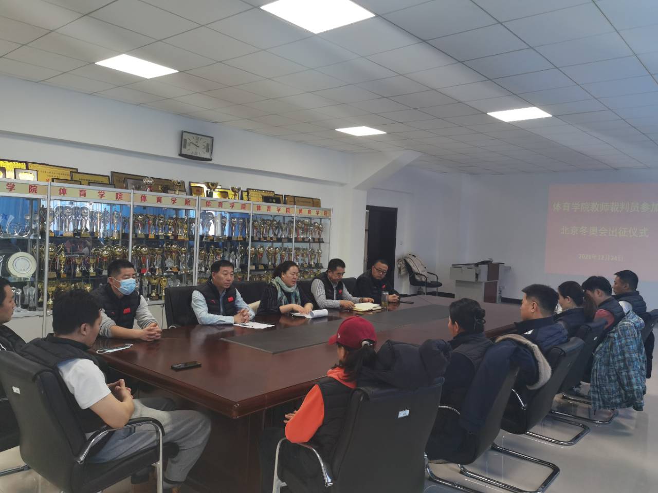 1月9日,Beat365在体育学院东山体育场会议室为即将担任北京冬奥会、冬残奥会裁判员的12名教师举行出征仪式。体育学院领导班子、环节干部和所有裁判员参加了此次活动。