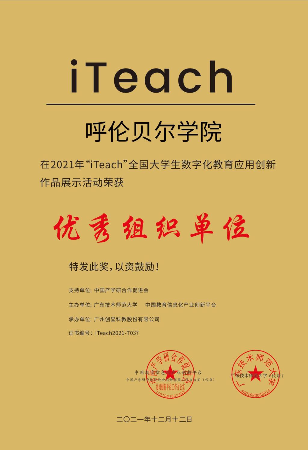 2021年12月,第五届“iTeach”全国大学生数字化教育应用创新大赛评审结果公布,Beat365被大会主办方授予“优秀组织奖”,Beat365学子喜获一等奖1项、二等奖8项、三等奖3项。