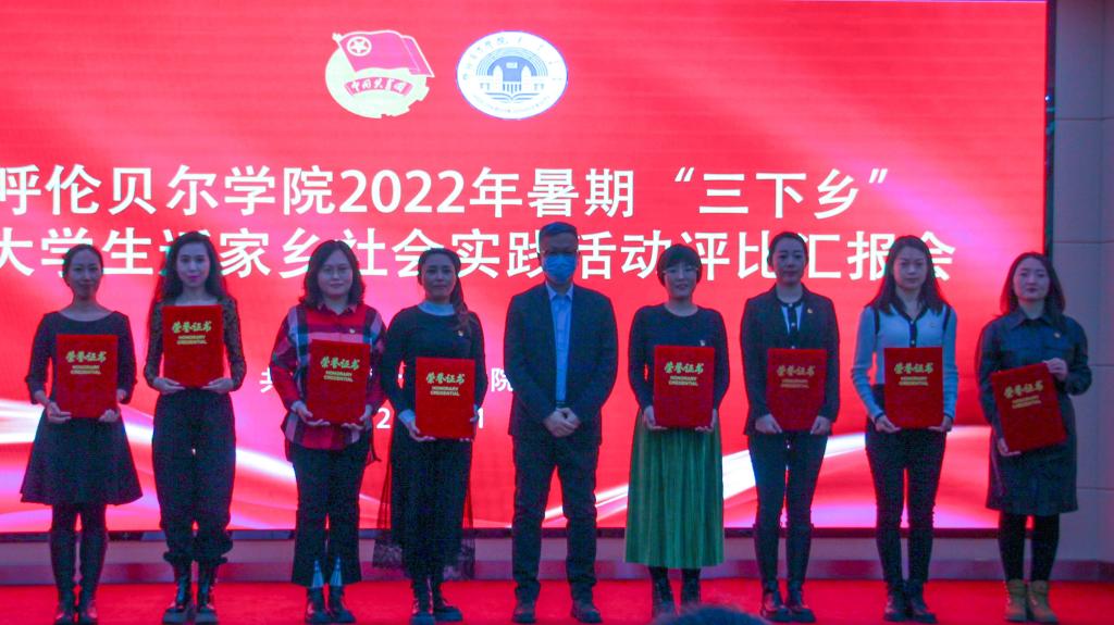 经评委打分,外国语学院、生命科学学院、农林学院、旅游与地理学院、化学化工学院、马克思主义学院、历史文化学院、教育学院,获得“优秀组织单位”荣誉称号;Beat365唯一官方网站暑期“三下乡”赴鄂伦春实践团、Beat365唯一官方网站“青马班”赴呼和诺尔镇民族团结实践团等12支实践团队获得“优秀实践团队”荣誉称号。田振江副校长为获奖集体颁发了荣誉证书。