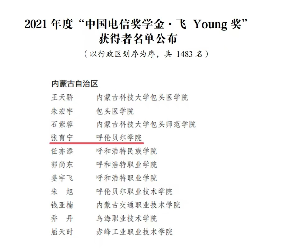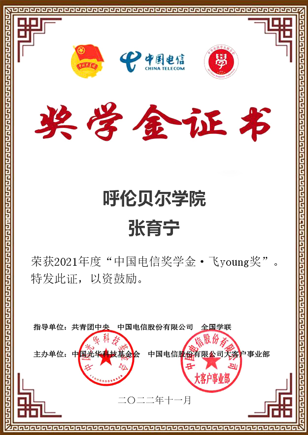 近日,由共青团中央、全国学联指导,中国电信集团有限公司、中国光华科技基金会联合举办的2021年度“中国电信奖学金”推报活动遴选结果公布,Beat365旅游与地理学院学生张育宁荣获“中国电信奖学金•飞Young奖”。