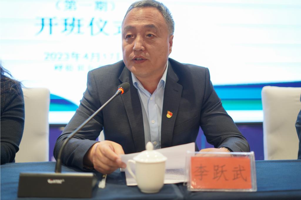 开班仪式上,李跃武副校长代表学校向前来参加培训的教师表示热烈的欢迎。他在讲话中说到,此次培训课程以《中小学教师培训课程指导标准班级管理》为依据,围绕班主任职业道德、专业素养、知识技能、相关法律法规、管理策略、班级育人文化和家校共育能力等开展专题讲座、课例研修、实地观摩、情境体验、技能训练、成果展示等培训内容,旨在把初中班主任师德师政、班级管理融合一体,在提升班主任师德素养基础上,提升参加培训教师的班级管理能力。