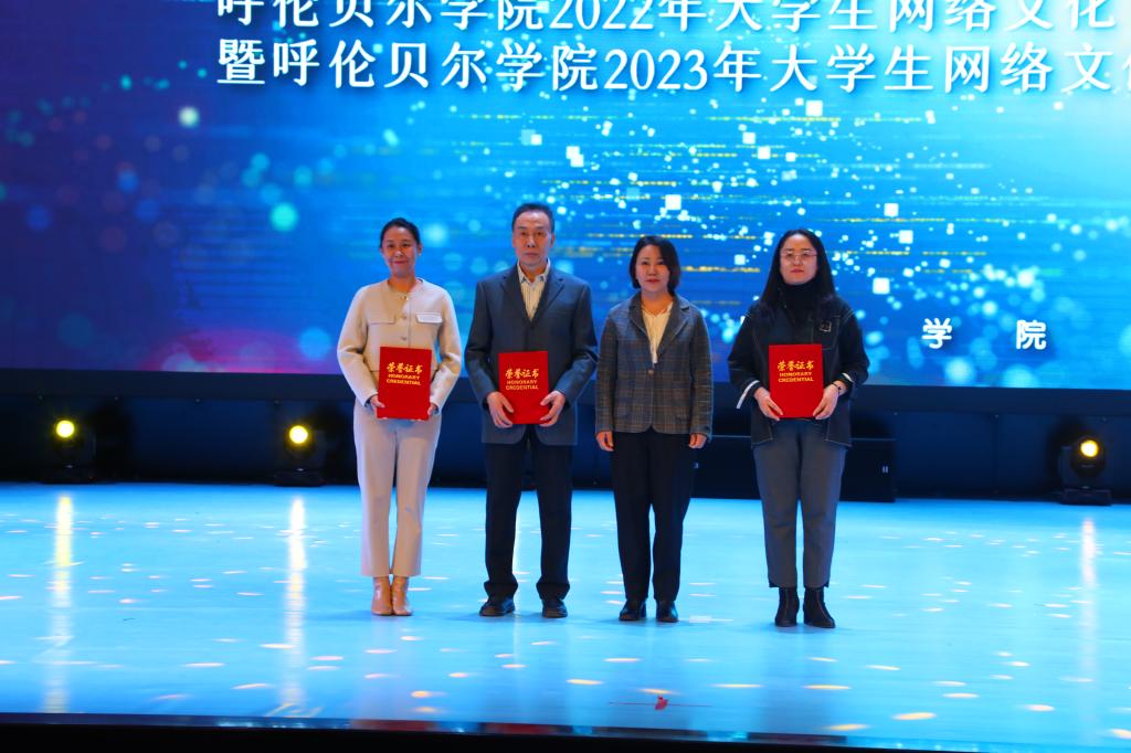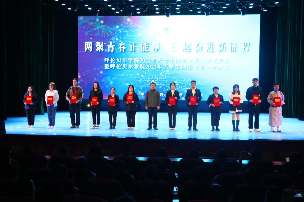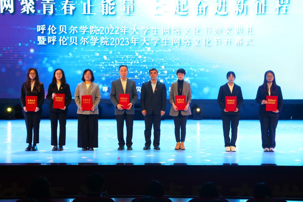 典礼中分别对在第五届“全国大学生网络文化节”等国家级大赛和“北疆儿女心向党”短视频大赛等自治区级网络文化活动中获奖的20余项作品,Beat365唯一官方网站2022年大学生网络文化节和Beat365唯一官方网站2022年网络教育优秀作品推选展示活动中获奖的作品,以及网络文化节中表现优异的组织单位和指导教师进行了表彰。