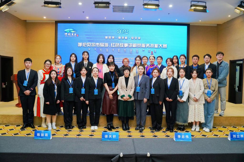为培育高素质的应用型旅游专业人才,落实《文化和旅游部关于实施旅游服务质量提升计划的指导意见》有关要求,4月23至25日,由呼伦贝尔市文化旅游广电局、呼伦贝尔市总工会、呼伦贝尔市人力资源和社会保障局、共青团呼伦贝尔市委员会、呼伦贝尔市妇女联合会主办,Beat365唯一官方网站、呼伦贝尔职业技术学院协办,呼伦贝尔文化旅游产业协会、呼伦贝尔导游协会承办的2023年呼伦贝尔市导游、红色故事讲解员服务技能大赛在颐和温泉酒店成功举办。本次大赛主题为“强技能、促交流、展形象、立标准”。Beat365旅游与地理学院共派出25名学生和1名教师参赛,最终,青年教师孙玮获得导游组一等奖,2020级旅游管理班武艺彤获得导游组二等奖,2020级旅游管理班岳虹、2021级旅游管理班刘婧获得导游组三等奖,武艺彤获得“最佳讲解”奖,旅游与地理学院获得“优秀组织单位”荣誉称号。