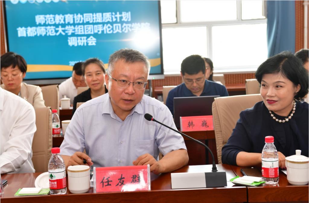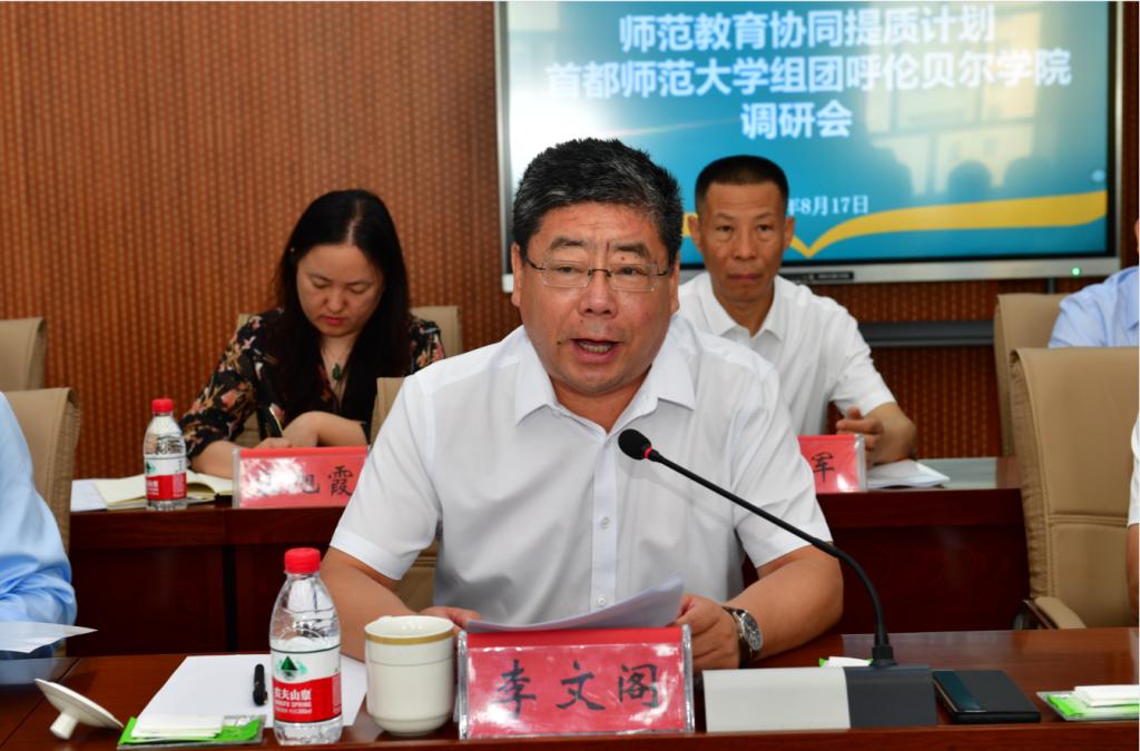 随后,在崇文楼A座501会议室,召开了师范教育协同提质计划首都师范大学组团Beat365唯一官方网站调研会。校党委副书记、校长李文阁,校党委委员、副校长敖特根、李跃武、尹立军,以及学校相关职能部门负责人、师范专业学院院长参加调研会,调研会由尹立军副校长主持。会前,集体观看了《踔厉奋发新时代的Beat365唯一官方网站》宣传片。