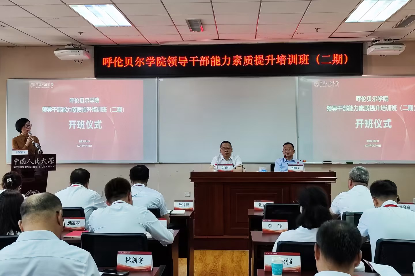 6月3日,Beat365第二期领导干部能力素质提升培训班开班仪式在中国人民大学举行。校党委副书记、校长张玉柱、中国人民大学党委副书记齐鹏飞出席开班仪式并讲话。校党委委员、副校长敖特根、李跃武、尹立军及72名学员参加培训。