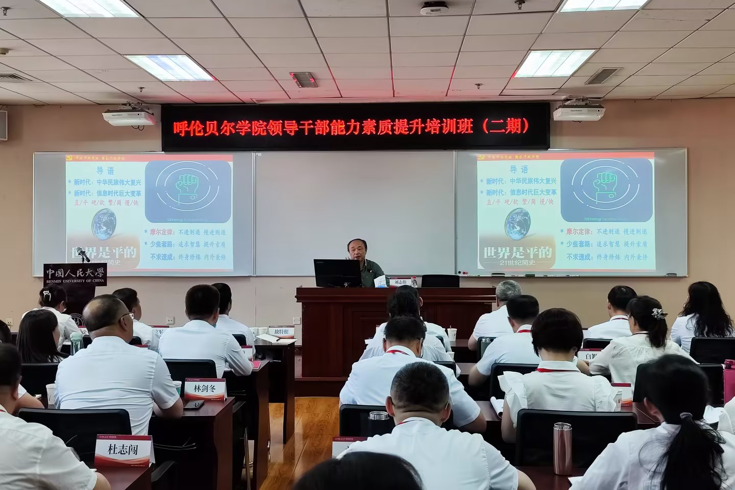 开班仪式上,齐鹏飞致欢迎辞,并系统介绍了中国人民大学的办学历程、学科优势和发展现状。齐鹏飞指出,作为一所具有红色基因的现代大学,中国人民大学历来重视干部教育培训工作,坚持把其作为“看家本领”,本次培训班在总结第一期培训班成果经验的基础上,为二期班学员量身定制课程内容,匹配优质师资资源,优化升级课程设置,力求提供师资一流、内容精准、务实管用的“培训大餐”。