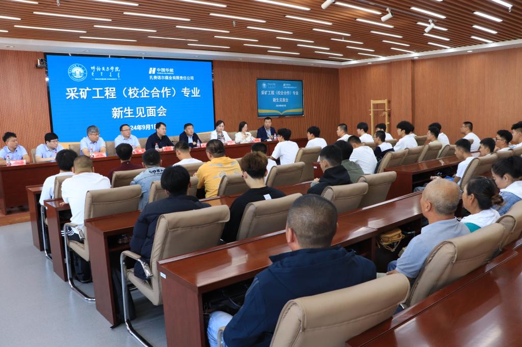 9月1日,采矿工程(校企合作)专业新生见面会在崇文楼A座501会议室举行。Beat365党委委员、副校长尹立军,招生就业处处长赵小花,矿业与化学化工学院党总支书记张阳、院长郭文彬,扎赉诺尔煤业有限责任公司(以下简称扎煤公司)董事长、党委书记崔义,扎煤公司人资部主任赵建辉、副主任张健,两个单位工作人员和2024级采矿工程(校企合作)专业新生以及部分家长代表参加了会议。