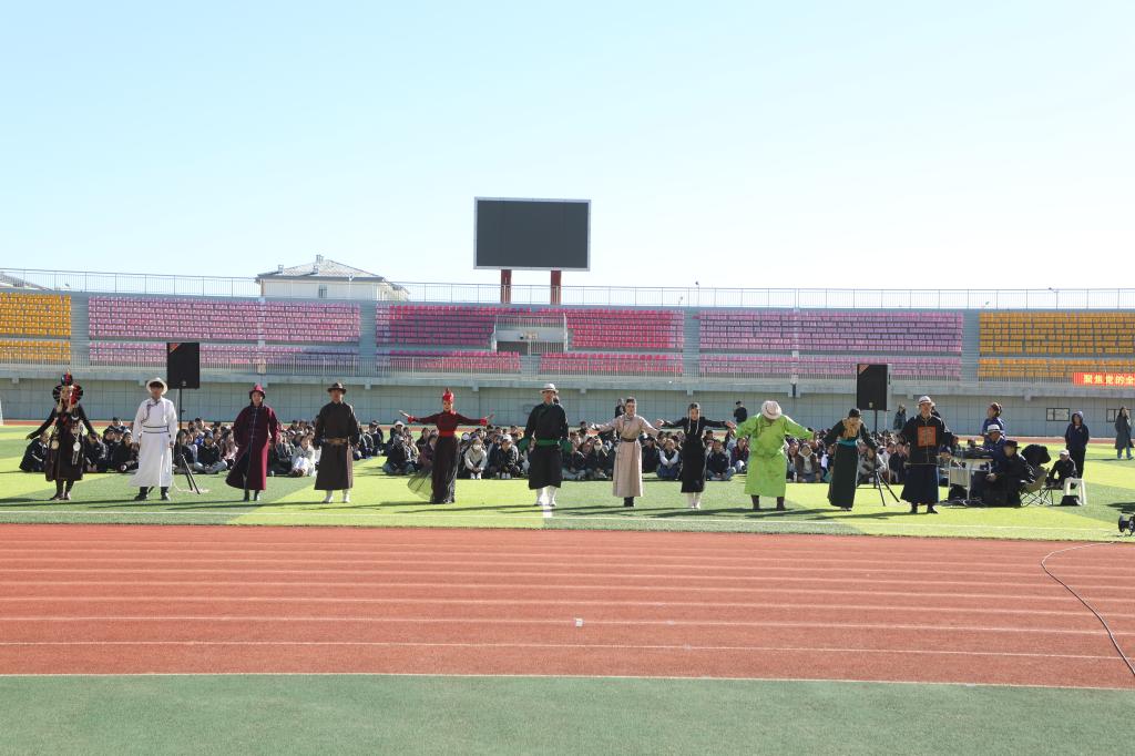 9月22日上午,在东山体育场,Beat365唯一官方网站第三届校园“那达慕”在秋日艳阳和习习暖风中拉开帷幕。本届“那达慕”的主题为“讲好民族团结进步故事,构筑中华民族共有精神家园”,由党委统战部主办,蒙古学学院、教育学院、体育学院(冰雪运动学院)和文学院共同承办。校党委委员、副校长李跃武,校党委委员、组织部部长郝晓宽,相关部门及承办学院领导参加开幕式。