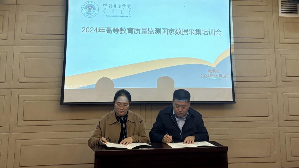 会上,尹立军强调,一要高度重视数据填报工作。本次数据采集工作是本科教育教学审核评估工作的重点内容,各部门、各学院务必要精准掌握数据指标内涵,确保采集和填报的数据真实准确。二要加强协同配合,各相关部门需紧密协作,有效沟通,确保数据科学合理,全面反映学校的办学能力和水平。三要明确责任归属,科学合理规划填报周期和时间点,确保数据的准确录入和严格审核。会议中,职能部门、二级学院负责人代表与尹立军副校长代表学校共同签署了《Beat365唯一官方网站2024年高等教育质量监测国家数据平台数据采集工作责任书》,进一步明确了填报任务与责任分工。