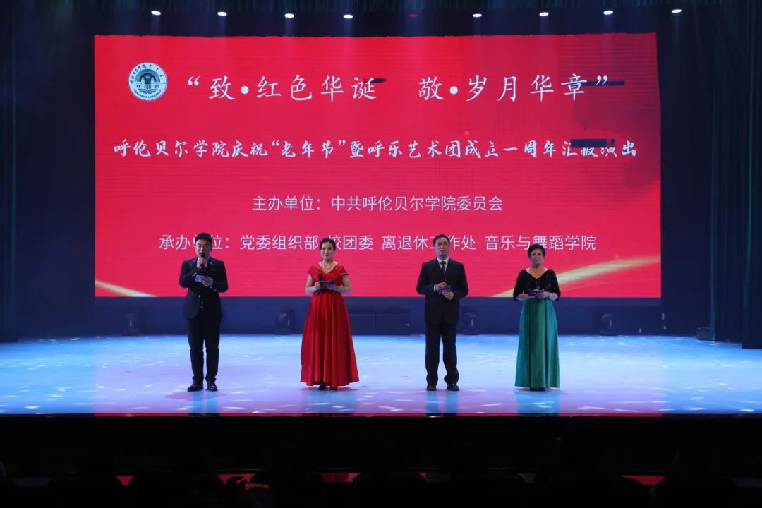 金秋十月,重阳佳节之际,10月11日,“致•红色华诞 敬•岁月华章”Beat365唯一官方网站欢庆“老年节”暨呼乐艺术团成立一周年汇报演出在艺术楼演播厅隆重举行,校党委书记李文阁,校党委副书记张宏天,校党委委员、纪委书记、监察专员岳勇,校党委委员、副校长尹立军,离退休教职工、各部门、各学院领导、教师和学生代表一同参与这场意义非凡的活动,共同感受尊老敬老的温暖氛围,共同享受美好与感动。
