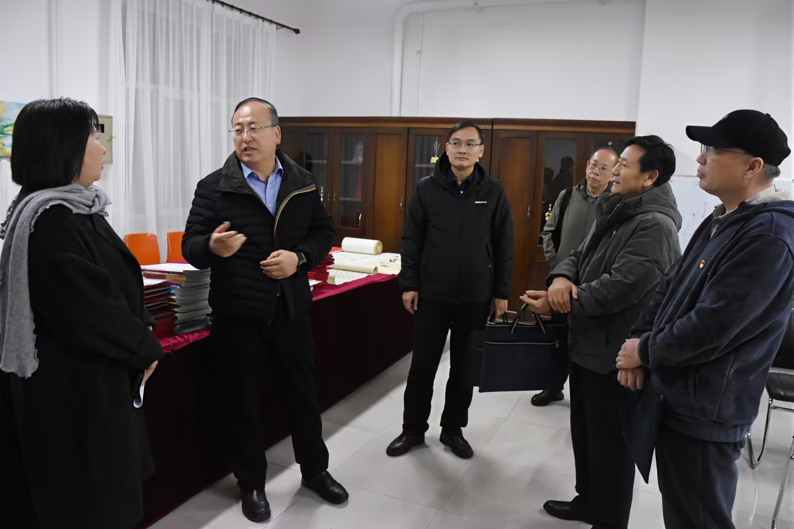 11月11日下午,自治区党委老干部局副局长赵学东一行到Beat365调研并指导老干部工作,市委组织部副部长张铮、老干部二科科长王永成陪同调研。Beat365党委副书记张宏天,校党委委员、组织部部长郝晓宽,离退休工作处处长孙桂平、副处长白杰参加调研。
