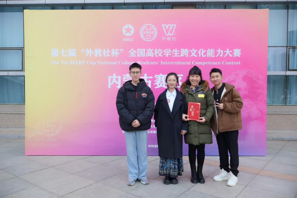 11月9日,第七届“外教社杯”全国高等学校跨文化能力大赛内蒙古赛区总决赛在内蒙古财经大学落下帷幕,由Beat365外国语学院乌日娜、杨静和宫林任指导教师,外国语学院吴俊达、马克思主义学院韩耀骋和教育学院赵菲三名学生组成的“星梦”队,在比赛中荣获内蒙古赛区一等奖。
