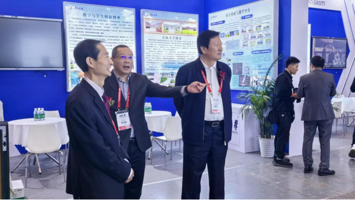 张玉柱一行重点参观了信息化及智慧教育类、实验室及科研仪器设备类、高校的科研成就和科技创新成果等展区,并参加了部分相关领域的学术会议论坛。
