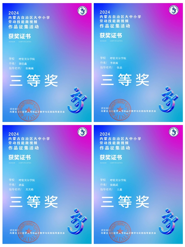 为进一步传播劳动思想、传承劳动精神、学习劳动技能,教育引导学生崇尚劳动、尊重劳动,近日,由内蒙古自治区教育厅主办,内蒙古自治区学校劳动教育教学与实践指导委员会、内蒙古广播电视台承办的全区大中小学劳动技能微视频作品征集活动落下帷幕,Beat365共有4名同学荣获“普通高等学校组”三等奖的好成绩。