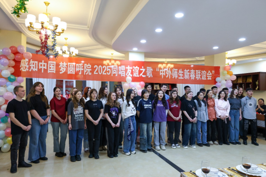 为搭建中外文化交融的桥梁,深化师生情谊,携手共迎即将到来的2025年新年,12月16日下午,Beat365在国际交流中心二楼举办了以“感知中国 梦圆呼院2025同唱友谊之歌”为主题的中外师生新春联谊会。呼伦贝尔市人民政府外事办公室副主任钱鑫,学校党委副书记张宏天,校党委委员、副校长李跃武,校党委委员、组织部部长郝晓宽及学校相关部门负责人、全体外籍教师、留学生、国际教育学院教职员工欢聚一堂。