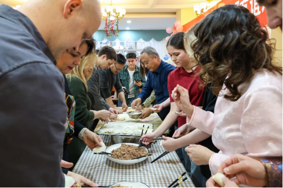 来自不同国家的老师和学生们围坐在一起,共同学习如何制作中国传统美食——包饺子。他们相互传授技巧,分享心得,更在互动中加深了对中国文化的了解和喜爱,也进一步增进了彼此之间的友谊。