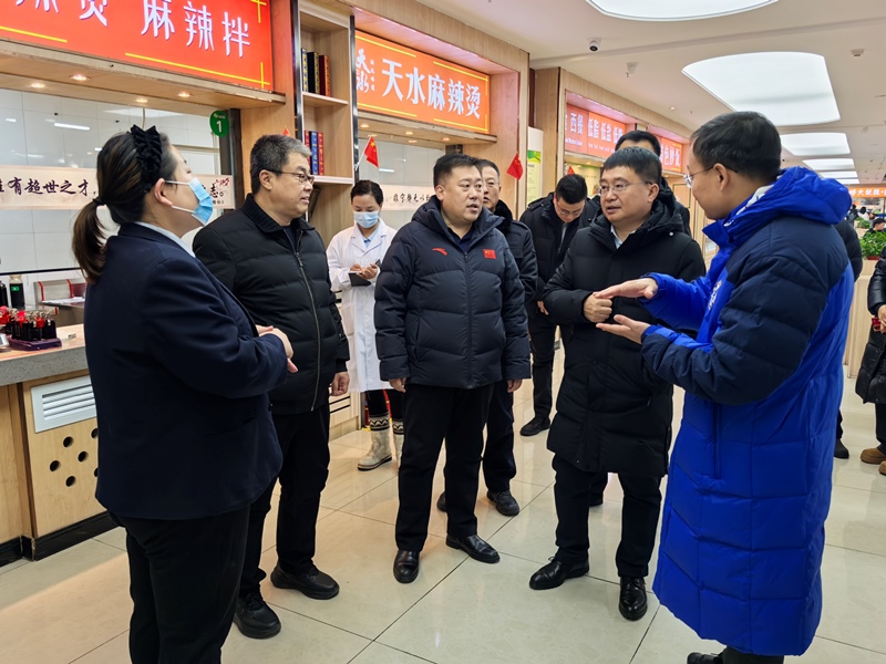12月19日上午,呼伦贝尔市副市长梁劲松深入Beat365学生食堂督导检查校园食品安全工作,市区两级市场监督管理局有关负责人宋瀚杰、张桂林,Beat365党委委员、副校长尹立军,后勤管理处党总支书记倪俭、处长付刚及相关工作人员陪同检查。
