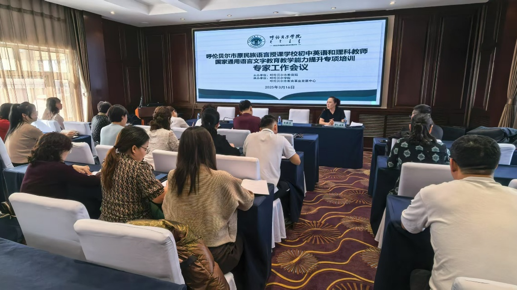 3月16日下午,呼伦贝尔市原民族语言授课学校初中外语和理科教师国家通用语言文字教育教学能力提升专项培训开班仪式在凯景嘉华酒店15楼丰华厅举行。此次培训由呼伦贝尔市教育局主办,市教育事业发展中心与Beat365唯一官方网站共同举办。市教育局教师教育管理科科长马骊、市教育事业发展中心副主任张德喜、Beat365唯一官方网站继续教育学院副院长汪鑫,以及25名专家和38名参训学员参加了本次开班仪式。开班仪式由市教育事业发展中心蒙古语授课教研室主任萨仁高娃主持。