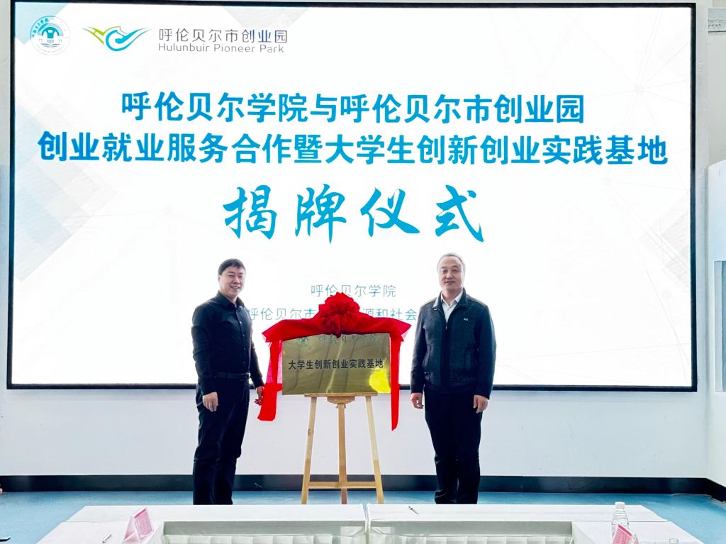 随后,李跃武与呼伦贝尔市创业与职业技能评价指导中心签署了创业就业服务合作协议,并与黄义喜共同为“大学生创新创业实践基地”揭牌。