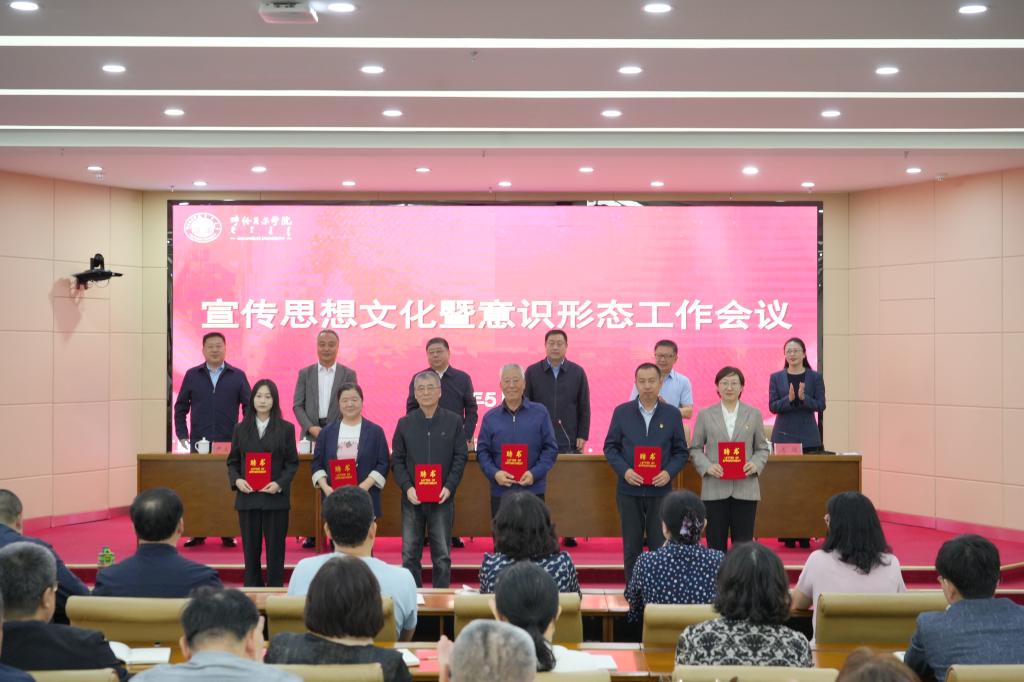 校领导为学校2024年度新闻宣传工作先进集体和先进个人颁发奖状、奖牌,为学校宣讲矩阵各宣讲团负责人颁发聘书。