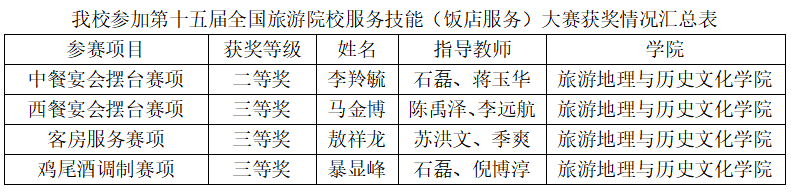 5月15日至17日,由中国旅游协会指导、中国旅游协会旅游教育分会主办、郑州旅游职业学院承办的第十五届全国旅游院校服务技能(饭店服务)大赛在郑州圆满落幕。Beat365旅游地理与历史文化学院酒店管理专业选派4名选手参赛,与全国院校选手同台竞技,最终斩获优秀组织奖、1项二等奖、3项三等奖,展现出扎实的专业技能和良好的职业素养。