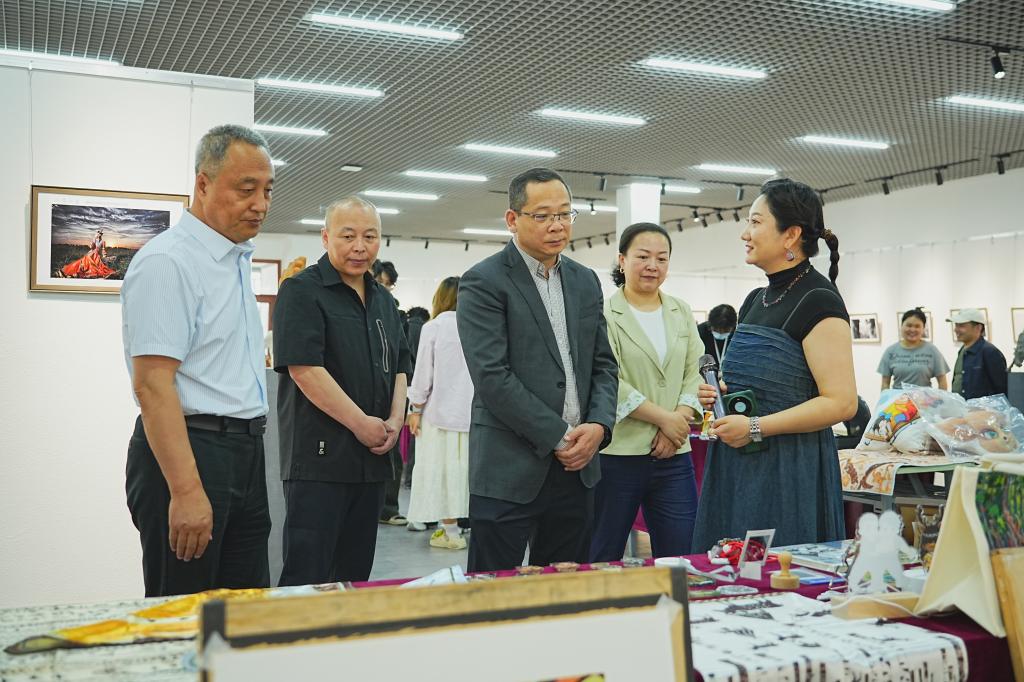 5月29日下午,由党委宣传部和美术学院联合举办的“印象北疆”文创、摄影作品联展在校美术馆开幕。这场以艺术为媒的文化盛宴,以独特视角诠释着北疆文化的深厚底蕴与时代内涵,吸引了众多师生及前来参观。学校党委副书记、校长张玉柱,校党委委员、副校长李跃武,校党委委员、党委宣传部部长李俏,校党委委员、党委统战部部长胡旭红及入展作者代表、学生代表参加开幕式。