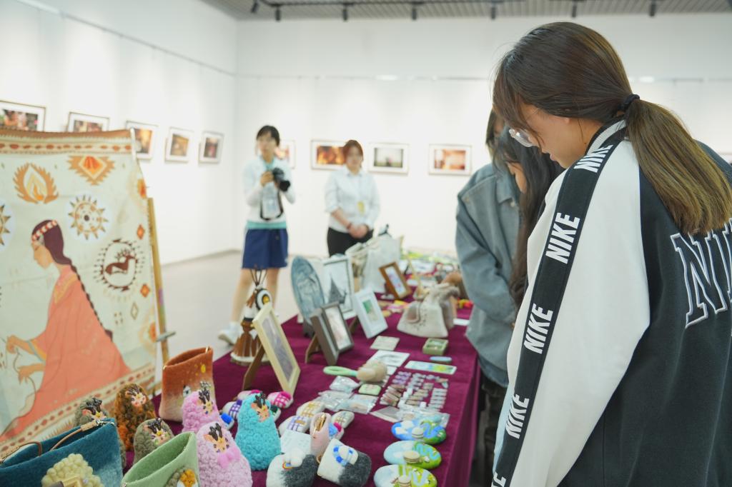 开幕式结束后,领导与师生共同参观展览。本次联展共展出128幅摄影作品与1100余项文创作品,文创展区内,以呼伦贝尔自然景观、民族风情为灵感设计的书签、笔记本、饰品等,将北疆文化基因与现代设计理念巧妙融合,既保留了古朴韵味,又彰显出时尚创新的设计语言;摄影展区中,镜头从自然风光、民俗生活、城市变迁等多元视角,捕捉北疆大地的壮美画卷与人文诗篇,每一幅作品都承载着摄影师对这片土地的深沉热爱。
