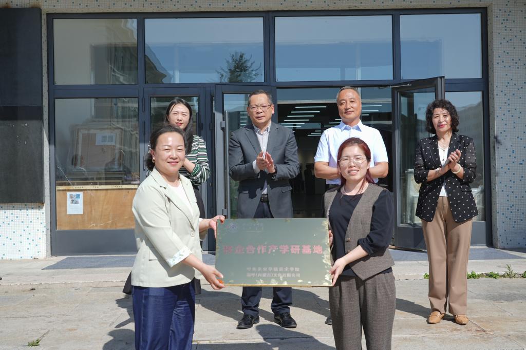 在全场嘉宾的共同见证下,美术学院与憨呼文化举行产学研合作基地授牌仪式,此次合作,旨在整合学校的教学资源与企业的市场优势,为学生搭建更广阔的实践平台,助力北疆文创产业向专业化、市场化方向迈进。