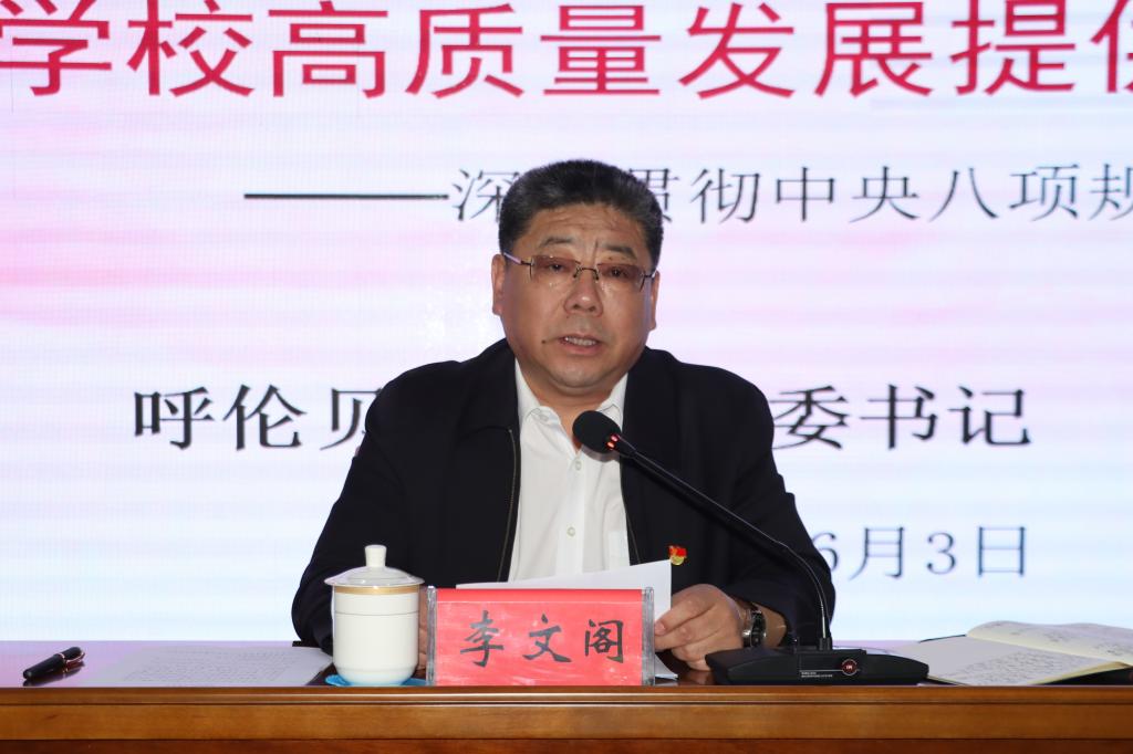 李文阁以《以作风建设提振干事创业精气神 为推进学校高质量发展提供坚强纪律保证》为题讲授学习教育专题党课并讲话。
