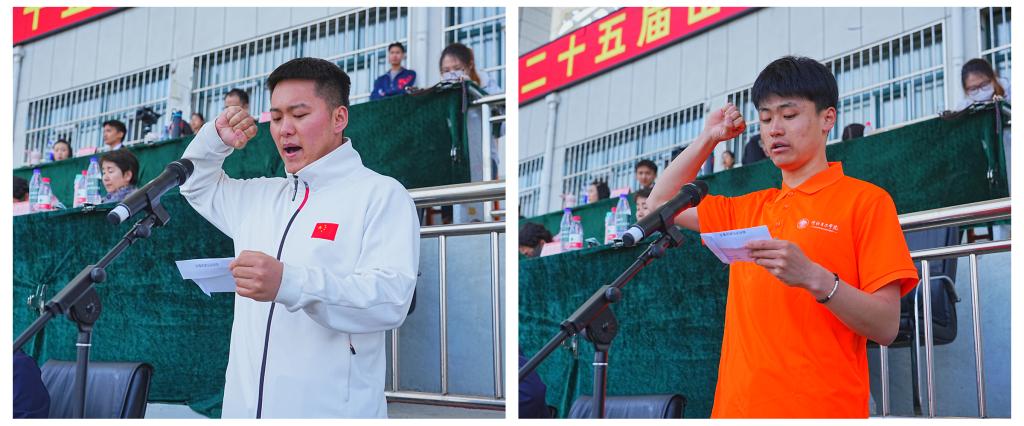 运动员代表与裁判员代表分别上台宣誓。运动员代表誓言将以饱满的热情、昂扬的斗志投入比赛,遵守规则、尊重对手,用拼搏诠释青春激扬的风采。裁判员代表庄严宣誓,将秉持公平、公正、公开的原则,认真履行职责,为运动会的成功举办保驾护航。