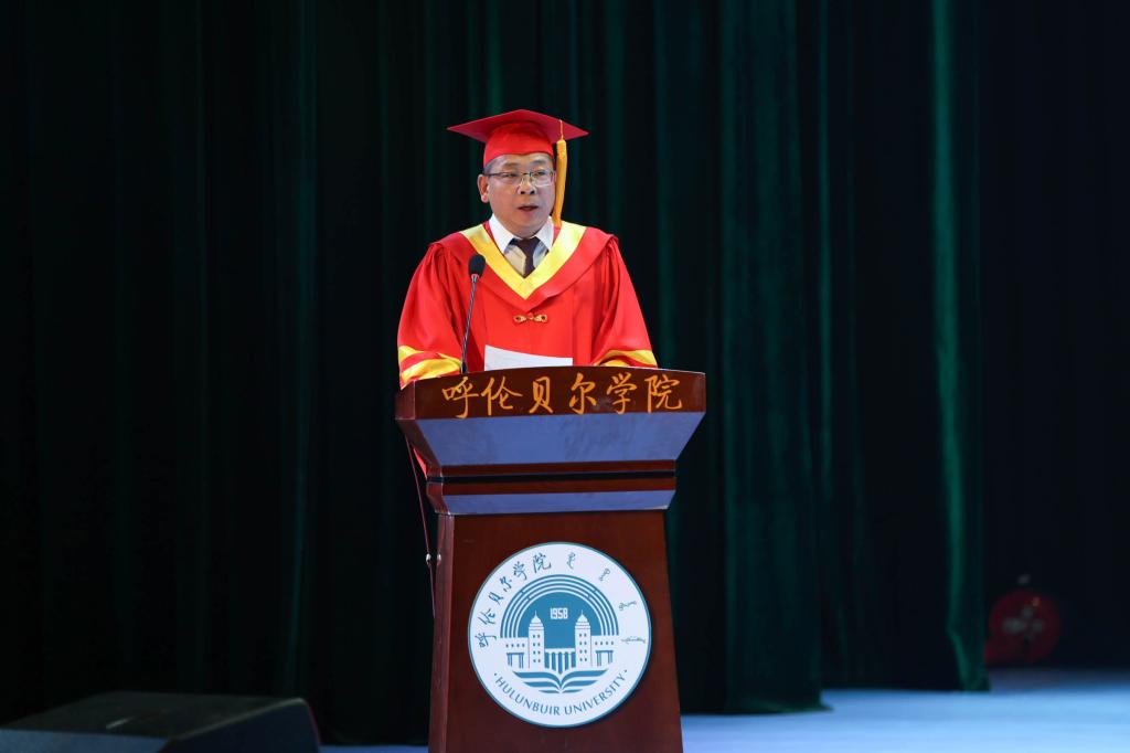 张玉柱发表了毕业致辞。他首先向顺利完成学业的毕业生们表示热烈祝贺,回顾了同学们在校期间参与的重大校园活动、取得的优异成绩。他寄语毕业生:“要坚守信念,牢记家国豪情;要脚踏实地,永葆青春激情;要宠辱不惊,常怀生活热情”,他希望毕业生们“从崇文湖畔扬帆起航,去闯荡世界、经历风雨,成为最想成为的模样,努力做一个眼有星辰大海、胸有丘壑万千、心有繁花似锦的追梦人。”校长的谆谆教诲赢得了现场阵阵热烈掌声。