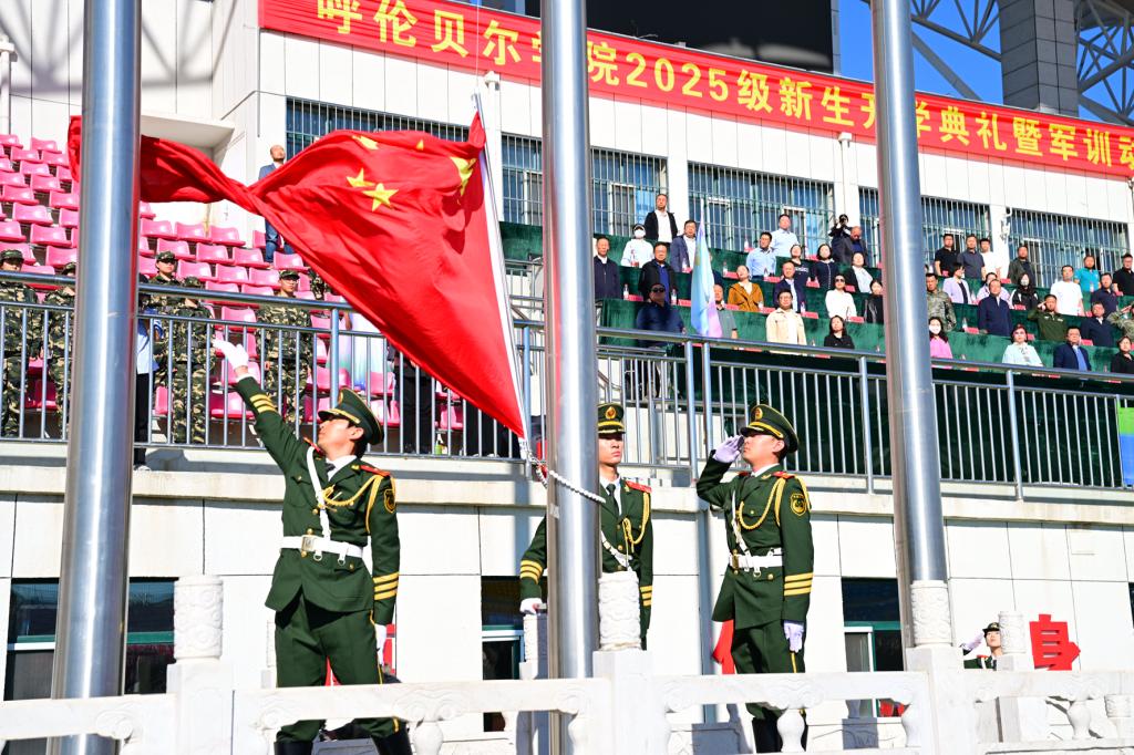 校党委副书记、校长张玉柱代表学校致辞,他向3550名2025级新生表示了热烈的欢迎,并向辛勤培育新生成长成才的老师和家长致以衷心的感谢,以及向承担此次军训任务的武警呼伦贝尔支队官兵和教官们表示诚挚的敬意。他对新生提出了希望:要把准人生坐标,让青春在明德立志中熠熠闪光;要锤炼硬核本领,让青春在破局攻坚中茁壮成长;要锻造钢铁纪律,让青春在集体熔炉中淬火成钢。他寄语同学们,愿他们在这片充满希望的土地上挥洒青春汗水,绽放光彩,为实现个人价值、推动学校发展、助力国家富强贡献自己的智慧与力量。