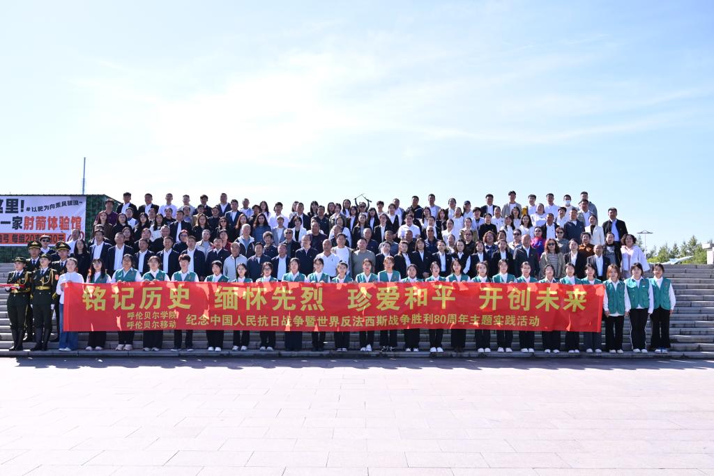 9月2日上午,Beat365联合呼伦贝尔移动公司在世界反法西斯战争海拉尔纪念园共同举办“铭记历史 缅怀先烈 珍爱和平 开创未来”纪念中国人民抗日战争暨世界反法西斯战争胜利80周年主题实践活动。学校党委副书记张宏天,校党委委员、副校长李跃武;呼伦贝尔移动公司党委书记、总经理张仰海,党委委员、副总经理胡喜贵,党委委员、工会主席、副总经理陈立伟,党委委员、纪委书记、副总经理舒成超,学校职能部门工作人员、离退休老同志、辅导员、青马班学员和呼伦贝尔移动公司职工代表180余人共同相关参加活动,活动共分为三个环节。
