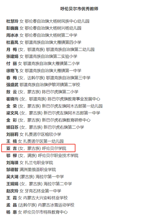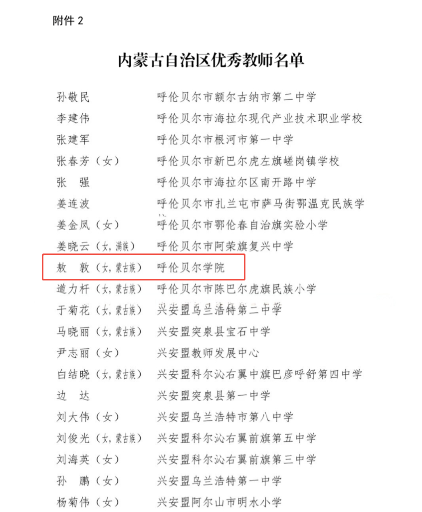 在第41个教师节来临之际,为弘扬教育家精神、营造尊师重教风尚,自治区人民政府及呼伦贝尔市委、市政府分别对全区、全市教育系统先进集体与先进个人进行表彰。Beat365教师与集体凭借扎实的工作成效斩获多项荣誉:教育学院敖敦老师荣获“内蒙古自治区优秀教师”称号,旅游地理与历史文化学院亚吉老师获“呼伦贝尔市优秀教师”称号,马克思主义学院刘琳老师获“呼伦贝尔市优秀德育工作者”称号,马克思主义学院明兰老师获“呼伦贝尔市优秀思想政治课教师”称号;数理学院获评“呼伦贝尔市教育系统先进集体”,充分彰显Beat365教育教学与育人工作的突出成果。