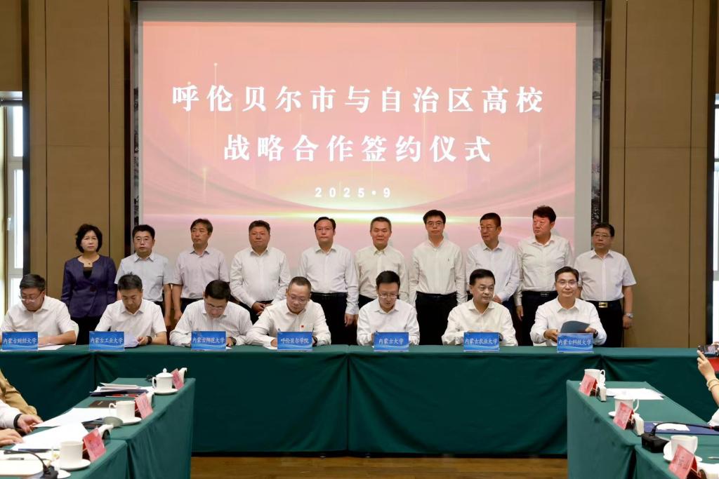 9月11日,呼伦贝尔市与自治区高校战略合作座谈会在呼和浩特召开。会上,呼伦贝尔市与内蒙古大学、内蒙古师范大学、内蒙古农业大学、内蒙古工业大学、内蒙古科技大学、内蒙古医科大学、内蒙古财经大学、包头医学院、内蒙古艺术学院等9所高校签署战略合作协议。市委书记王旺盛,自治区教育厅党组成员杨玉春,市领导王猛、孙微出席并见证签约。Beat365党委书记李文阁,校党委副书记、校长张玉柱及相关职能部门负责人参会。