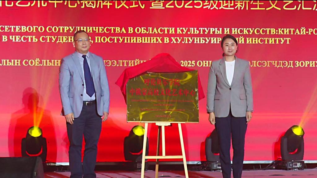 9月17日晚,“烽火记忆 同歌峥嵘八十载·青春和声 共谱友谊新华章”中俄蒙文化艺术中心揭牌仪式暨2025级迎新生晚会在学校体育馆举行。晚会邀请蒙古国立大学东部分校校长米达格玛、相关单位领导、嘉宾出席。