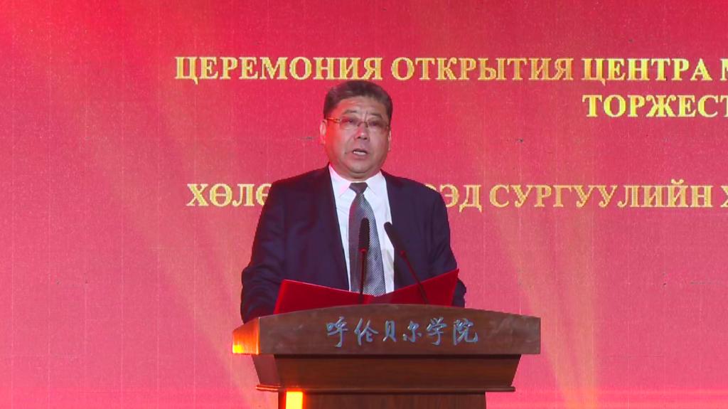 张玉柱和蒙古国立大学东部分校校长米达格玛为中俄蒙文化艺术中心揭牌。