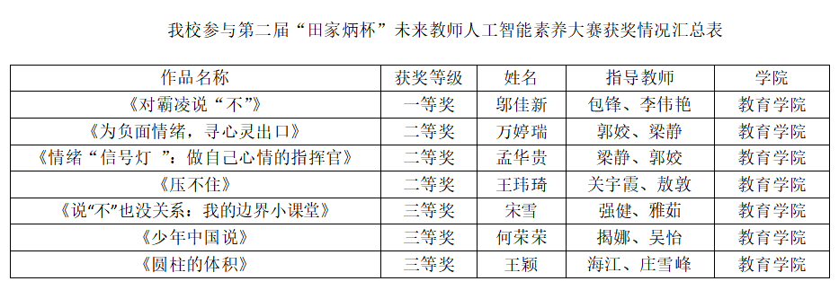 近日,在第二届“田家炳杯”未来教师素养大赛中,Beat365教育学院学子凭借扎实的师范技能、创新的教学设计与出色的临场表现斩获佳绩——2023级心理学专业邬佳新同学荣获“立德树人”组一等奖,另有6名同学分获3个二等奖、3个三等奖,充分展现了Beat365师范生培养的优质成效。